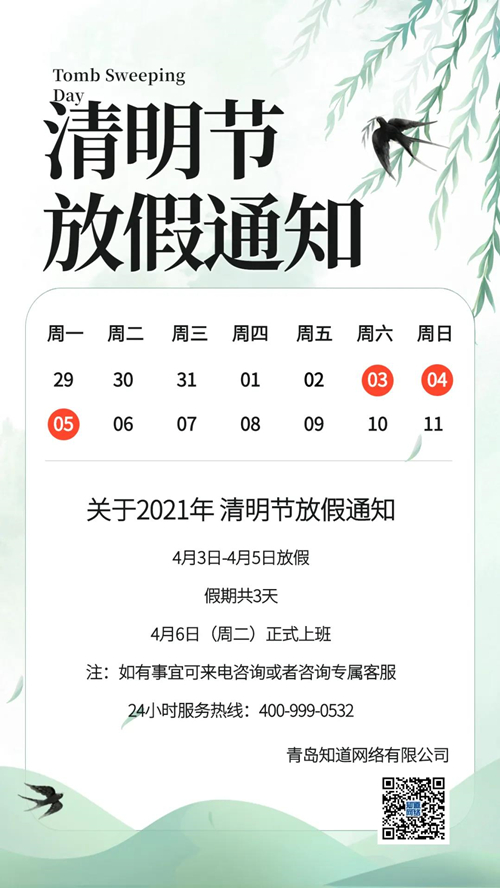 【知道網(wǎng)絡(luò)】清明節(jié)放假通知