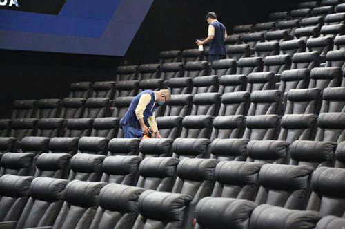 對于衛(wèi)生消毒,該版《防控指南》根據(jù)電影院的不同區(qū)域制定了相對細(xì)節(jié)的規(guī)定。其中,對于大堂、影廳、衛(wèi)生間、走廊、疏散通道等公共區(qū)域,《防控指南》指出,需每日不少于2次噴霧消毒;售取票機(jī)、商品售貨區(qū)、自動販賣機(jī)、公共區(qū)域座椅、入口閘機(jī)、衛(wèi)生間等重點(diǎn)區(qū)域,則需要每日不少于5次擦拭消毒;而在影廳座椅扶手、3D眼鏡等觀眾直接接觸物品,電影院需每場消毒一次;此外,電影院需要做好入場檢測,登記觀眾信息,檢查體溫,并在電影院入口配備手消毒劑。