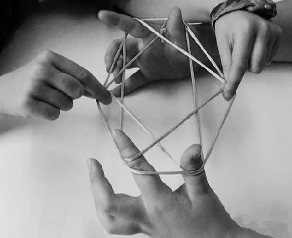 到現(xiàn)在,只要有心情,也可以用一根線打個結(jié)變身成一個好玩的工具。兩個小伙伴之間把繩子翻來翻去,變幻無窮,也樂趣無窮。