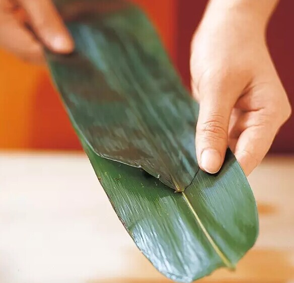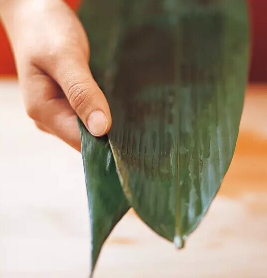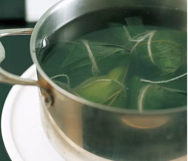 如果沒有鮮品,干葉也可以,不過香味就略遜一籌。將曬干的粽葉,買回來放在溫水里泡,用刷子把葉子的兩邊都刷一遍,再過涼水,反復數(shù)次,粽葉才算洗干凈,放在水里一直泡到要用時拿起來,攤平,稍稍晾干。用不完的粽葉可以曬干保存。