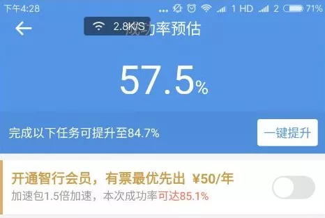 告訴我成功率只有57%,如果開(kāi)通會(huì)員的話可以達(dá)到85%,嗯,不開(kāi):