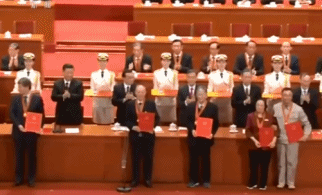 改革開放40周年大會上,黨和國家領導人集體轉身,向“改革先鋒”稱號獲得者和“中國改革友誼獎章”獲得者表示祝賀。