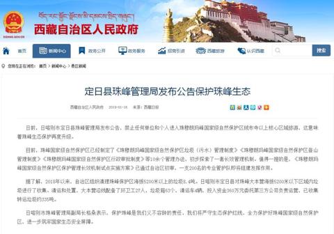 定日縣珠峰管理局發(fā)布公告保護(hù)珠峰生態(tài) (via xizang.gov.cn)