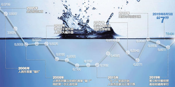 8月5日9時(shí)25分出爐的人民幣對(duì)美元中間價(jià)跌穿6.90關(guān)口,報(bào)6.9225,較前一交易日下調(diào)229點(diǎn),中間價(jià)貶至2018年12月3日以來(lái)最低。與此同時(shí),當(dāng)日在岸、離岸人民幣雙雙跌“破7”關(guān)口。截至記者18時(shí)35分發(fā)稿,離岸人民幣最低報(bào)7.10570,在岸人民幣最低報(bào)7.04740。