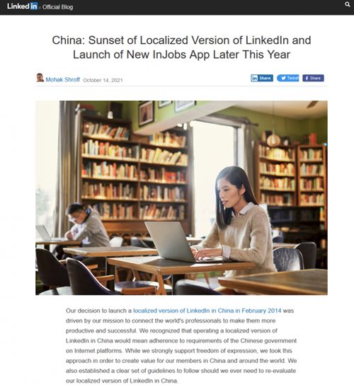 微軟宣布將關(guān)閉領(lǐng)英中國服務(wù)