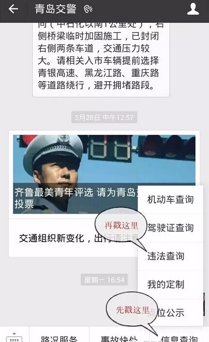(1)進入“青島交警”微信公眾號