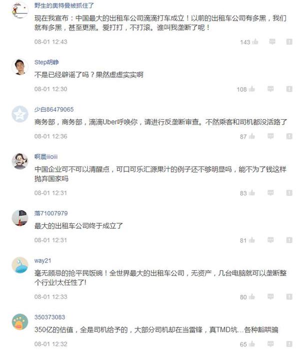 有人說,U滴合并了,我卻高興不起來!因為對于用戶而言,我只關心你是否物美價廉。當競爭陷入僵局、燒錢似無止境的時候,兩家打車軟件巨頭突然決定握手言和溫柔相待,這讓一旁的“吃瓜群眾”著實懵逼。 從此以后兩家軟件你中有我,我中有你,不分彼此,消息一出,網上嘩然一片,有網友揚言:“一家獨大,反壟斷不坐了!”,而另一方的專車司機們也放出豪言:“不補貼,不干了!”。