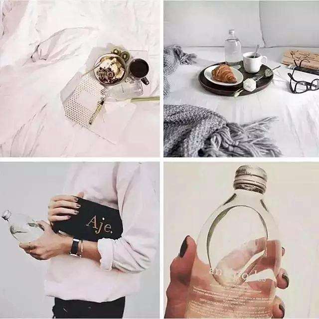 顏值大咖駐扎的Instagram上,喝水這件小事都力求完美。新西蘭一家水廠就以性冷淡風(fēng)的瓶裝水Antipodes走紅社交網(wǎng)絡(luò)。最常見(jiàn)的就是以植物配Antipodes,拍照逼格飆升。雖然看著像生理鹽水,但這美的,讓你一瓶爽掏40元肉也不疼。