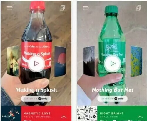 不過(guò)最近 ,可口可樂(lè)又放大招,和流媒體音樂(lè)平臺(tái)Spotify合作以AR技術(shù)打造喝可樂(lè)聽(tīng)音樂(lè)的科技感享受。用戶通過(guò)專有App掃描瓶身就能聽(tīng)到189種Spotify列表上的音樂(lè),扭轉(zhuǎn)瓶身還能調(diào)解音樂(lè)播放順序。在技術(shù)浪潮推動(dòng)下,不知道又要有多少飲料搭肩黑科技刷新體驗(yàn),看來(lái)值得期待。