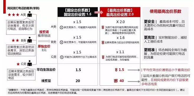 2、電話出價系數(shù)由固定值升級為最高出價系數(shù),請上調系數(shù)以避免錯失