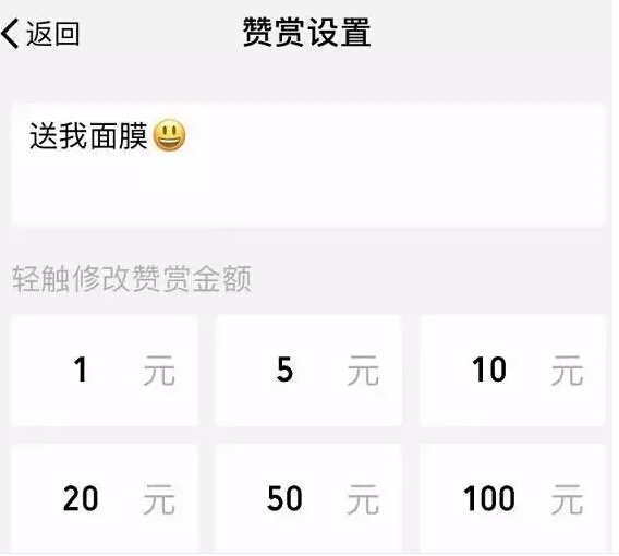 贊賞的文字和金額,都可以自己設(shè)置~