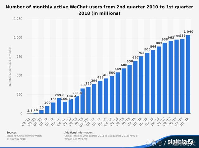 從當(dāng)前的用戶數(shù)量來看,微信以10億月活成為全球應(yīng)用第一梯隊。