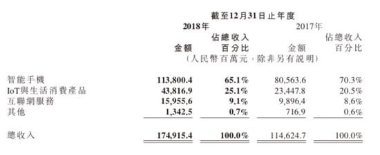 分析小米2018年營收構成,可以看到其主要收入來源依然是手機業(yè)務。