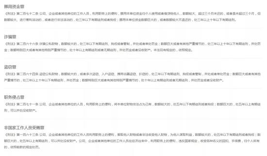 除了被公司辭退,在法律層面腐敗犯罪究竟會(huì)面對(duì)怎樣的刑罰?北京師范大學(xué)中國刑法研究所副所長彭新林此前表示,在2014年到2017年,民營企業(yè)腐敗犯罪中,共包括15個(gè)罪名,其中最主要的就是單位行賄罪、職務(wù)侵占罪、挪用資金罪、非國家工作人員受賄罪和行賄罪。